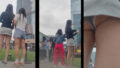 スラっとした美脚のミニデニムスカートの女の子と友達2人でインスタ撮影してる所こっそりパンティを隠し撮り