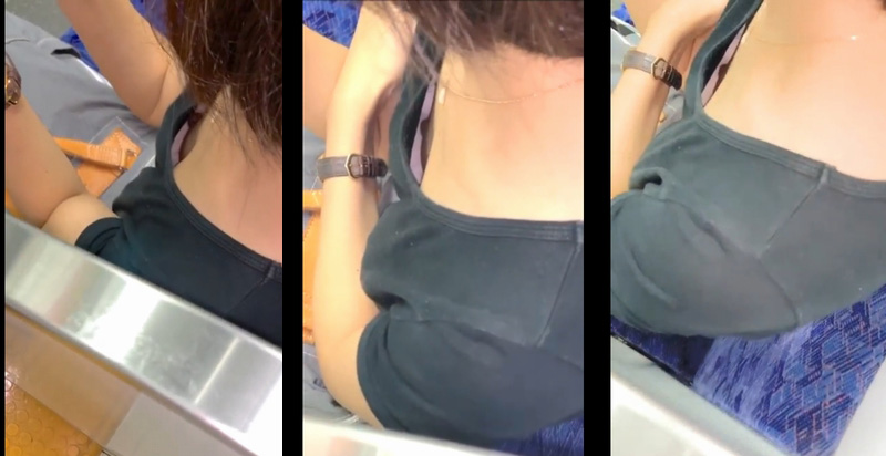 車内で見つけたペタンコオッパイお姉さんの乳首を隠し撮り