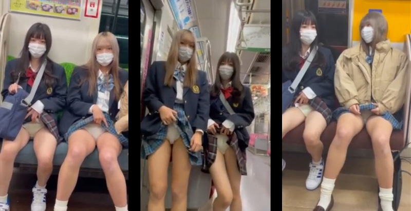 金髪JKと黒髪JKの2人組が車内でパンティ見せつけ