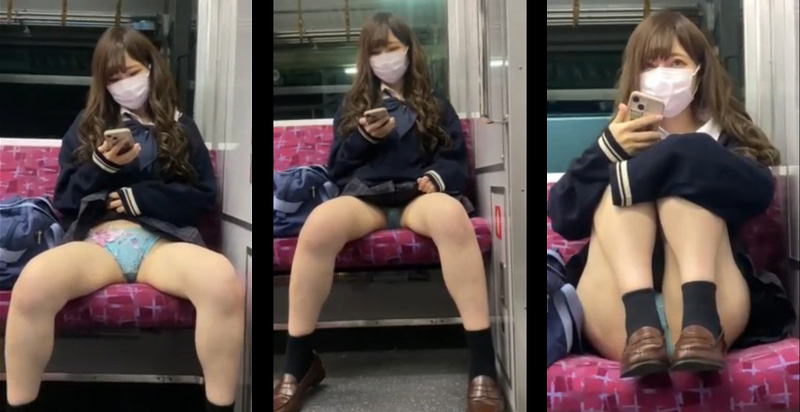パンチラを撮影してたら気づいて水色のパンティを見せつけてくれたギャル女子高生