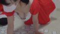 サンタコスをしてカルタをする爆乳お姉さんの気持ちよさそうなおっぱいを隠し撮り