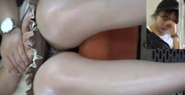 お疲れなのか車内で寝てるお姉さんのデルタゾーンから見えるパンティを隠し撮り