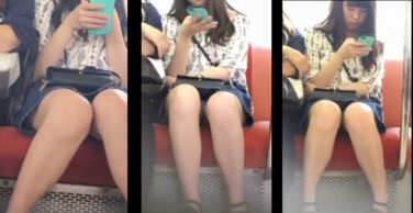 車内でスマフォに夢中になってる美少女のパンティを正面から隠し撮り