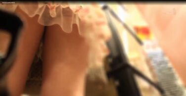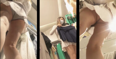 パンチラ 白のミニスカを履いたショートカット美脚若妻の赤いパンティを見せつけ!パイパンマ●コで見せてくれた