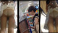 お団子ヘアーのスレンダーな美脚お姉さんをエスカレータでスカートをめくってパンティを盗撮